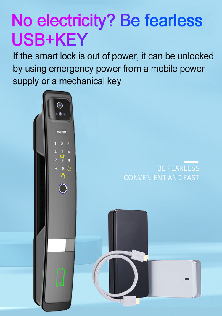 Specifications: 3D facial recognition+visual cat eye+graffiti WIFI capture+NFC+fingerprint+password+card+key (including 24 * 240mm lock body)
